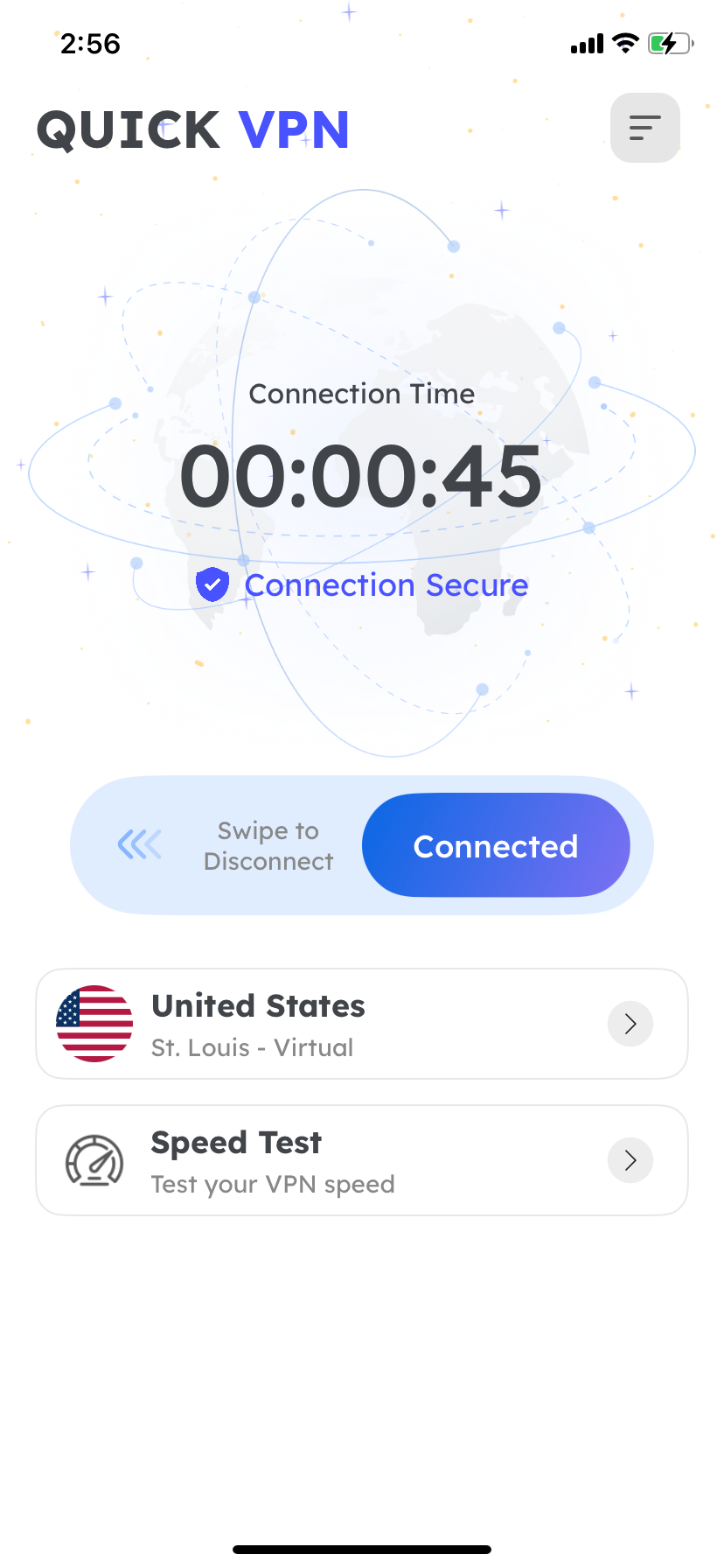 Your privacy always comes first. Quick VPN collects a minimal amount of data to offer you a fast and reliable VPN service. We collect OS version, hardware model to optimize our network connection to you. We do not keep logs of your online activities and never associate any domains or applications that you use.